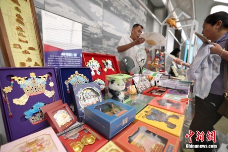 7月3日,朝阳区博物馆之城建设大会暨北京博物馆季文创月启动仪式在北京举行。会上,2025“北京博物馆季文创月”系列活动正式启动。今年,作为国际博物馆日主会场,北京市打造了首届“北京博物馆季”活动,以每月一个主题的形式构建“博物馆+”活动平台,7月的文创主题活动落地在朝阳区。图为参会人员欣赏各类博物馆文创产品。中新社记者 富田 摄