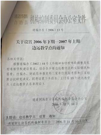 县编办《关于设置2006年至2007年上期边远教学点的通知》(通编办发[2006]13号)及其附件明确列出:“木脚乡坪水教学点,教师:马某泽”。这份2006年11月10日印发的文件无可争议地证明,直至2006年上学期,我依然是教育局和编办官方认可、在编在岗的坪水教学点唯一教师。