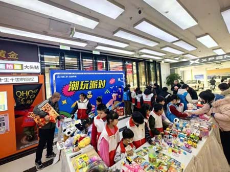 志愿者们在为老人制作节日伴手礼的同时,也在为怀柔特殊教育学校的特殊儿童们精心准备着节日的厚礼。连日来,志愿者们两次与怀柔特殊教育学校的师生们一起,在怀柔万达广场并肩而坐,温情相聚,让平等与尊重成为了这次相遇的最温暖底色。活动现场,小志愿者们精心布置的爱心小店依次排开,闲置的书籍,玩具,文具等商品被擦拭一新,每一件物品都承载着他们的一片爱意。这里没有喧闹的叫卖,只有小店主们稚嫩而认真的介绍。交流中,双方不仅锻炼了沟通与实践的能力,更深刻理解了物尽其用,爱心分享的真谛。 特殊学校的儿童们带来的手工作品,每一件都凝聚着他们纯真的创意与执着的努力,让过往的市民纷纷驻足选购,用实际行动给予特殊儿童们以最直接的鼓励与支持。