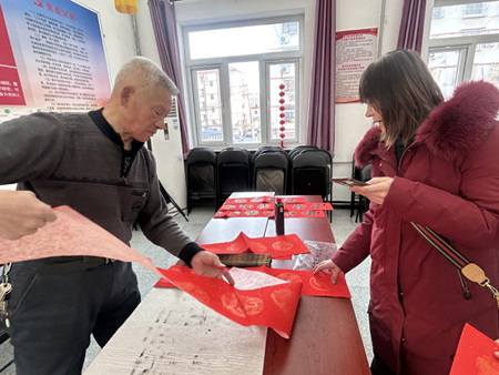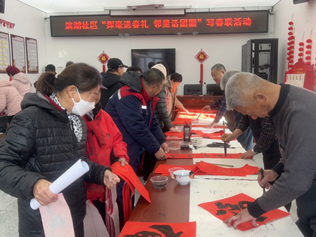 滨湖社区负责人表示,红彤彤的春联承载着美好期盼,遒劲的“福”字传递着暖心关怀。此次活动不仅为滨湖社区增添了浓厚的节日氛围,更拉近了邻里距离,让居民在传统文化体验中感受到新春的暖意与社区的温情,为即将到来的马年春节注入了醇厚的文化韵味。