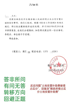 信访是送上门来的群众工作,要通过信访渠道摸清群众愿望和诉求,找到工作差距和不足,举一反三,加以改进,更好为群众服务。近日,江西省南昌市经开区樵舍镇连环村曾家小组曾先生致函有关部门,反映连环村委会用虚假协议分配征地补偿款(含安置补助费),以及村委会负责人冒充土地使用权人签征收土地协议的问题。