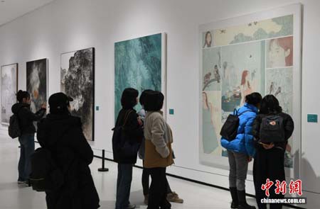 12月4日,位于重庆的四川美术学院美术馆举行的第八届全国青年美术作品展览吸引民众参观。