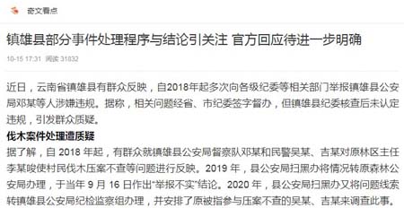 近日,云南省镇雄县有群众反映,自2018年起多次向各级纪委等相关部门举报镇雄县公安局邓某等人涉嫌违规。据称,相关问题经省、市纪委签字督办,但镇雄县纪委核查后未认定违规,引发群众质疑。