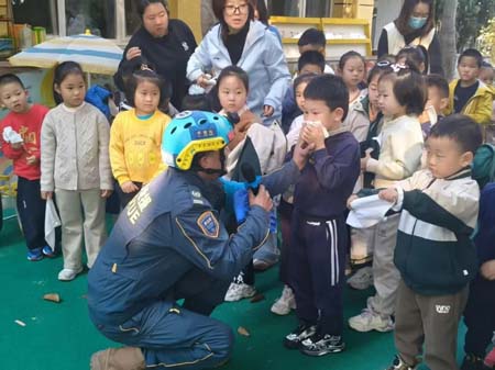 产新网讯(魏明俊)今年11月9日是第34个全国消防日,值此之际,作为基层消防安全教育重要单位的北京怀柔区第二幼儿园,在怀柔乐贝家志愿服务队和怀蓝应急救援队及北京禧宝露文化中心的组织下,举办了一场“以练为战,防患未燃”为主题的消防安全演练活动。