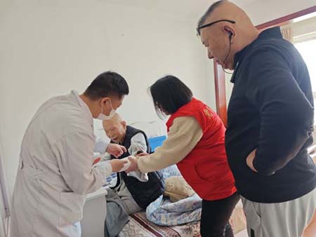除了线下讲座,上门服务同样暖人心扉。辖区90岁高龄的退休老干部王大爷不慎摔伤骨折,居家休养期间,社区得知情况后,第一时间联动怀柔中医院骨科主任医师,上门为其进行检查、更换手臂绷带,并细致告知家属日常护理注意事项,贴心的服务赢得了老人的好评。