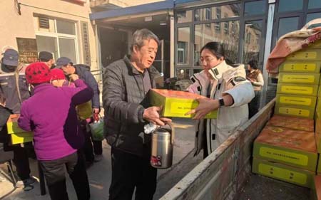 “咱这饺子就是香!猪肉白菜馅的吃着过瘾,韭菜鸡蛋馅的吃起来鲜香!”78岁的王奶奶端着刚出锅的饺子,脸上漾开满足的笑容。餐后,村集体还为每位老人送上寓意“平平安安”的苹果礼盒,当盛装果实的礼盒映照在老人的张张笑脸时,这份冬日里的温情在大厅里久久回荡。