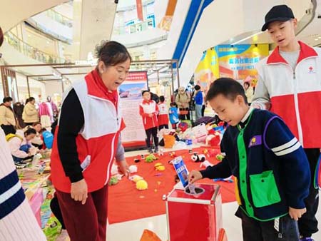 志愿者们在为老人制作节日伴手礼的同时,也在为怀柔特殊教育学校的特殊儿童们精心准备着节日的厚礼。连日来,志愿者们两次与怀柔特殊教育学校的师生们一起,在怀柔万达广场并肩而坐,温情相聚,让平等与尊重成为了这次相遇的最温暖底色。活动现场,小志愿者们精心布置的爱心小店依次排开,闲置的书籍,玩具,文具等商品被擦拭一新,每一件物品都承载着他们的一片爱意。这里没有喧闹的叫卖,只有小店主们稚嫩而认真的介绍。交流中,双方不仅锻炼了沟通与实践的能力,更深刻理解了物尽其用,爱心分享的真谛。 特殊学校的儿童们带来的手工作品,每一件都凝聚着他们纯真的创意与执着的努力,让过往的市民纷纷驻足选购,用实际行动给予特殊儿童们以最直接的鼓励与支持。
