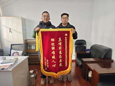 “马哥,真是太谢谢您了!要不是您及时帮忙,不仅我们家马桶用不了,整栋楼的主管道都得受影响!”近日,怀柔区泉河街道新贤家园社区居民许先生,手捧着一面印着“真情实意为,排忧解难暖人心”字迹的鲜红锦旗,走进社区办公室。以表达他家对马富俐此次帮助的真挚认可,而这次的马桶疏通事件,不过是他日常工作的冰山一角。