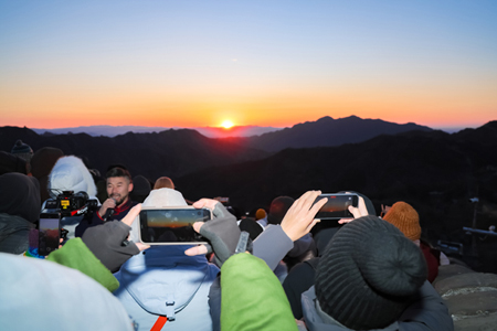 据了解,元旦观日出活动作为慕田峪长城的品牌活动之一,已经举办三十余年,凭借其独特的魅力和丰富的文化内涵,吸引了无数游客前来参与,共同见证新年的第一缕阳光照耀在古老长城之上的壮丽景色。“今年是我第二次来这儿跨年了,这份仪式感,别处找不到。”游客刘先生笑着说。