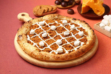 在产品研发过程中,双方以“保留板栗本味、适配多元口味”为核心,精选怀柔优质栗果,经圣伦食品先进工艺加工成细腻栗子泥,搭配酥脆饼干碎融入比萨制作,最终打造出暖甜不腻、层次丰富的创新产品,既延续了怀柔板栗的天然风味,又契合了现代消费者对健康美味的双重追求,实现了“本土特色+餐饮创新”的完美融合。