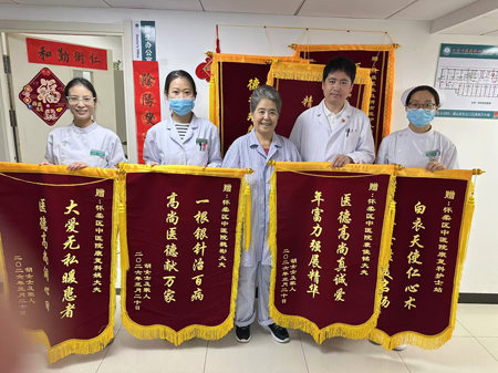 近日,在京郊怀柔中医院接受近 4 个月康复治疗的胡女士,在出院前夕特意定制了 4 面锦旗,分别送到康复科医护人员手中,以此感谢科室全体医护人员这段时间的精心治疗与暖心照料,用朴实的方式表达内心深深的感激之情。
